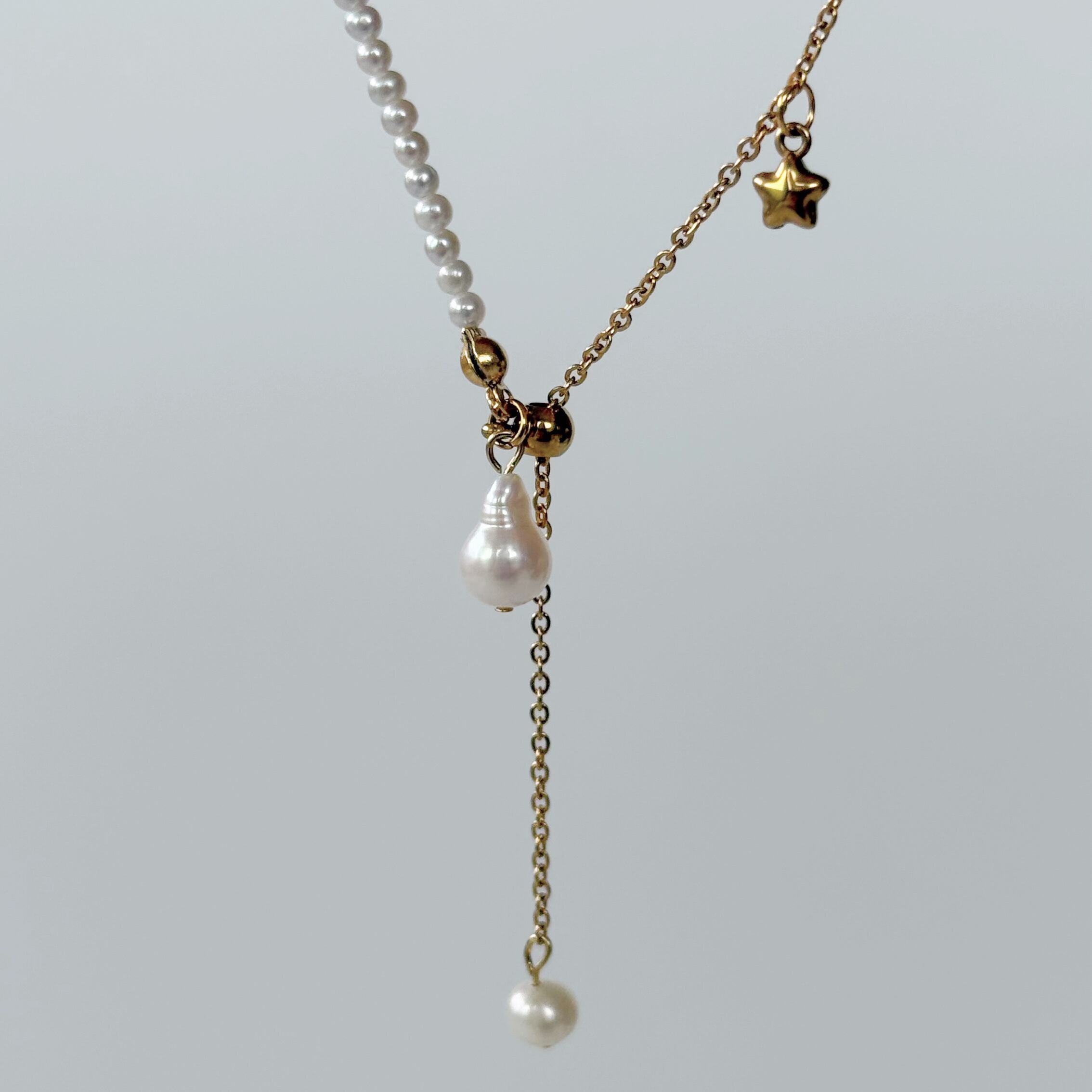 繊細な淡水パールに、きらりと光る小さな星チャームを添えて…