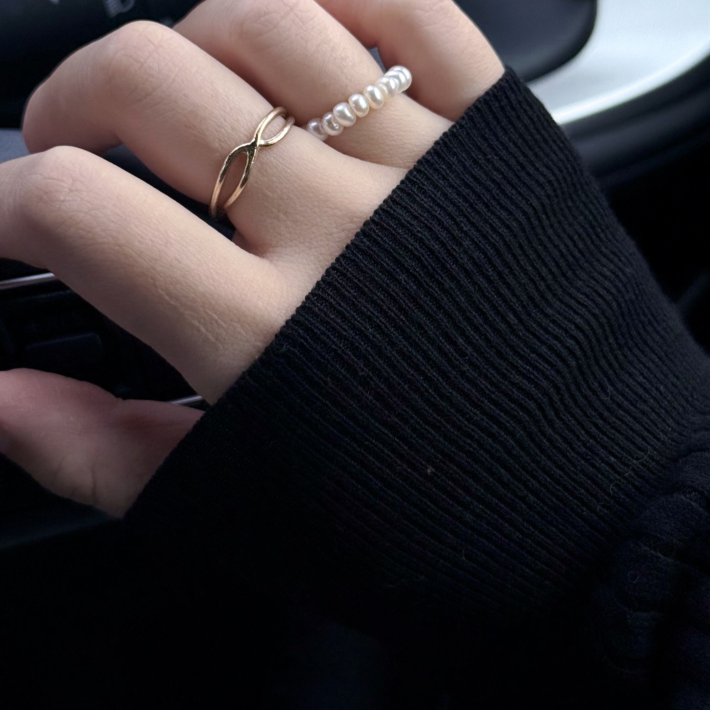 日常のワンポイントとしてコーディネートを格上げするパールリングです