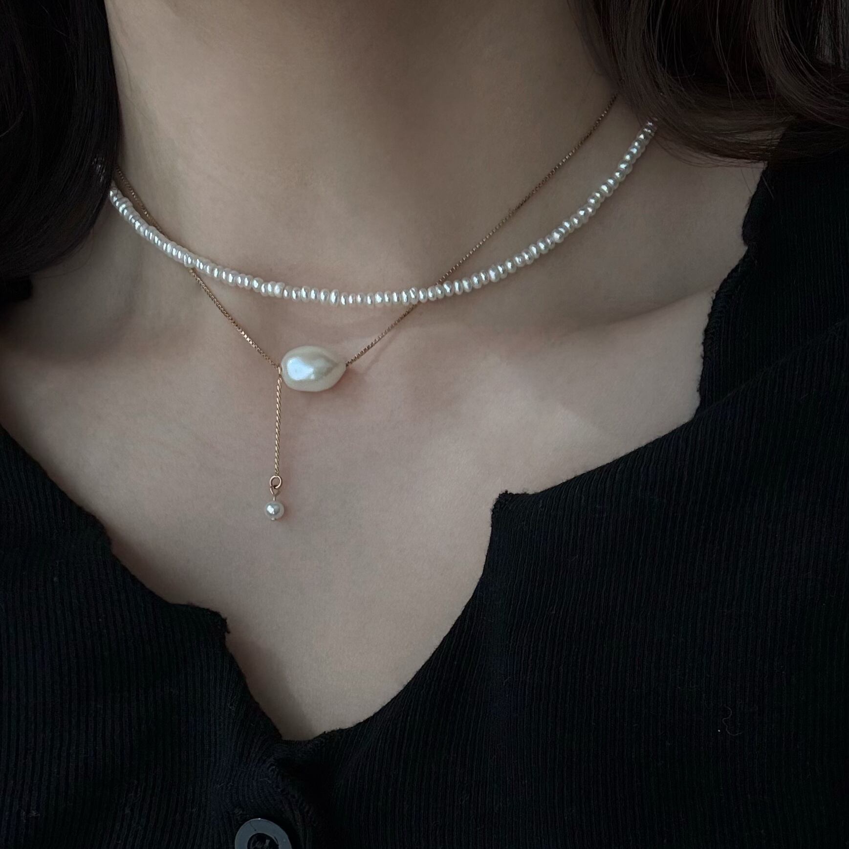 フォーマルではなく、デイリーに馴染むフルパールネックレス